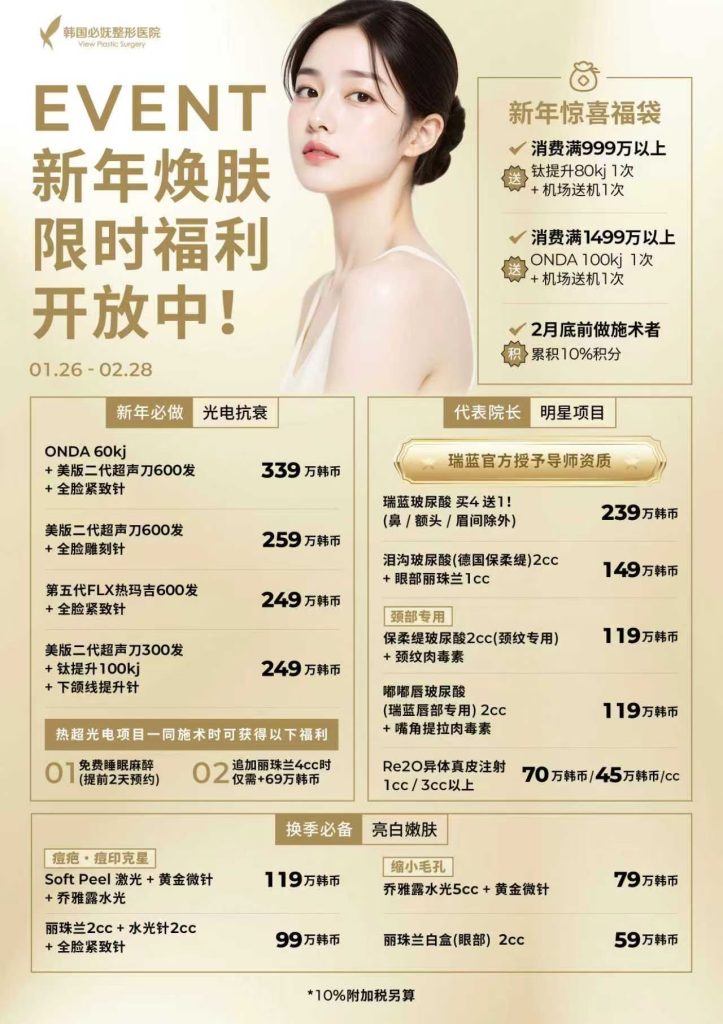 2026年韓國春節整形去哪裡?BeautsGO 聯合韓國必嫵(View)整形醫院推出限時特惠!涵蓋隆乳、輪廓、
