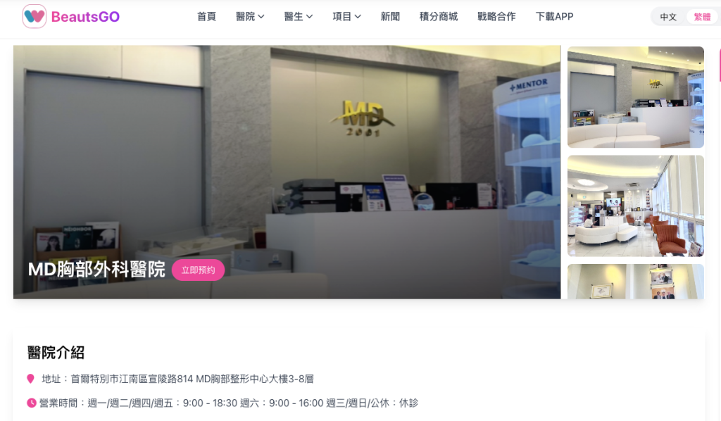 可前往 BeautsGO 官方網站查看 MD胸部外科醫院 最新價格與預約資訊。