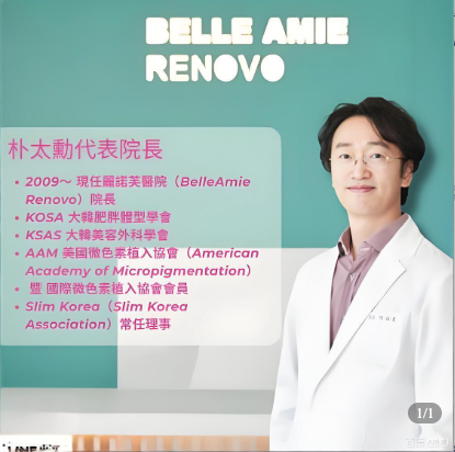 弘大麗諾芙皮膚科由朴太代表院長親自坐診並負責面诊,朴院長自 2009 年就任該院院長以來,擁有十餘年臨床醫美診療經驗,同時身為 KOSA 大韓肥胖體型學會、KSAS 大美容外科學會會員,美國微色素植入協會及國際微色素植入協會會員,更是 Slim Korea 常任理事,在面部抗衰、輪廓緊致、問題肌治療等領域造詣深厚。