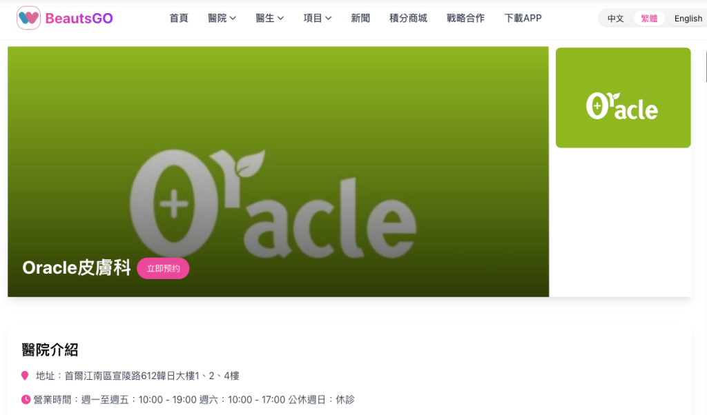 - Di halaman utama, masukkan nama “Oarak” atau “Oracle” dalam kotak carian untuk mencari klinik kulit Oracle Oarak; anda juga boleh mengunjungi laman khusus BeautsGO untuk klinik tersebut.